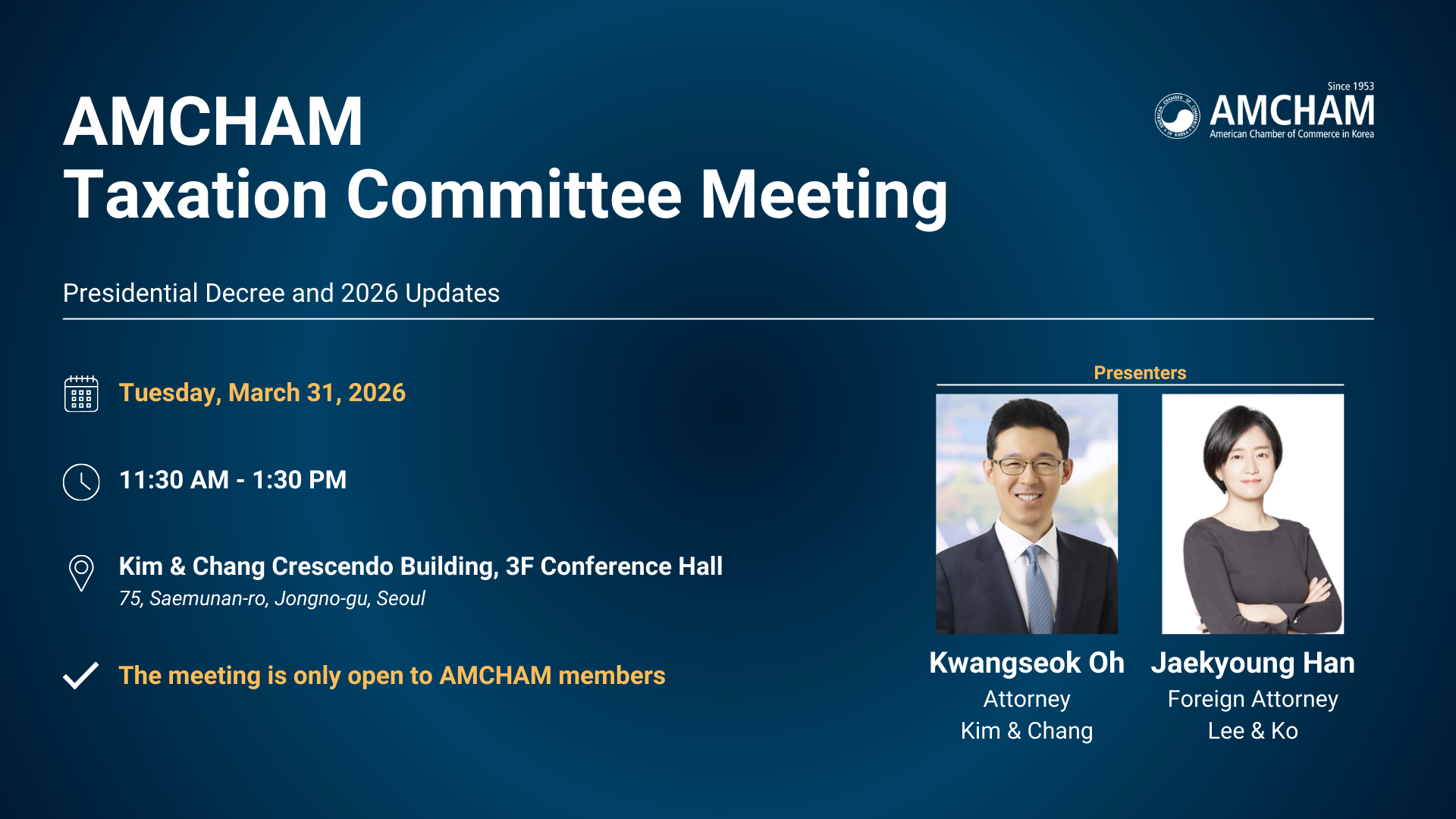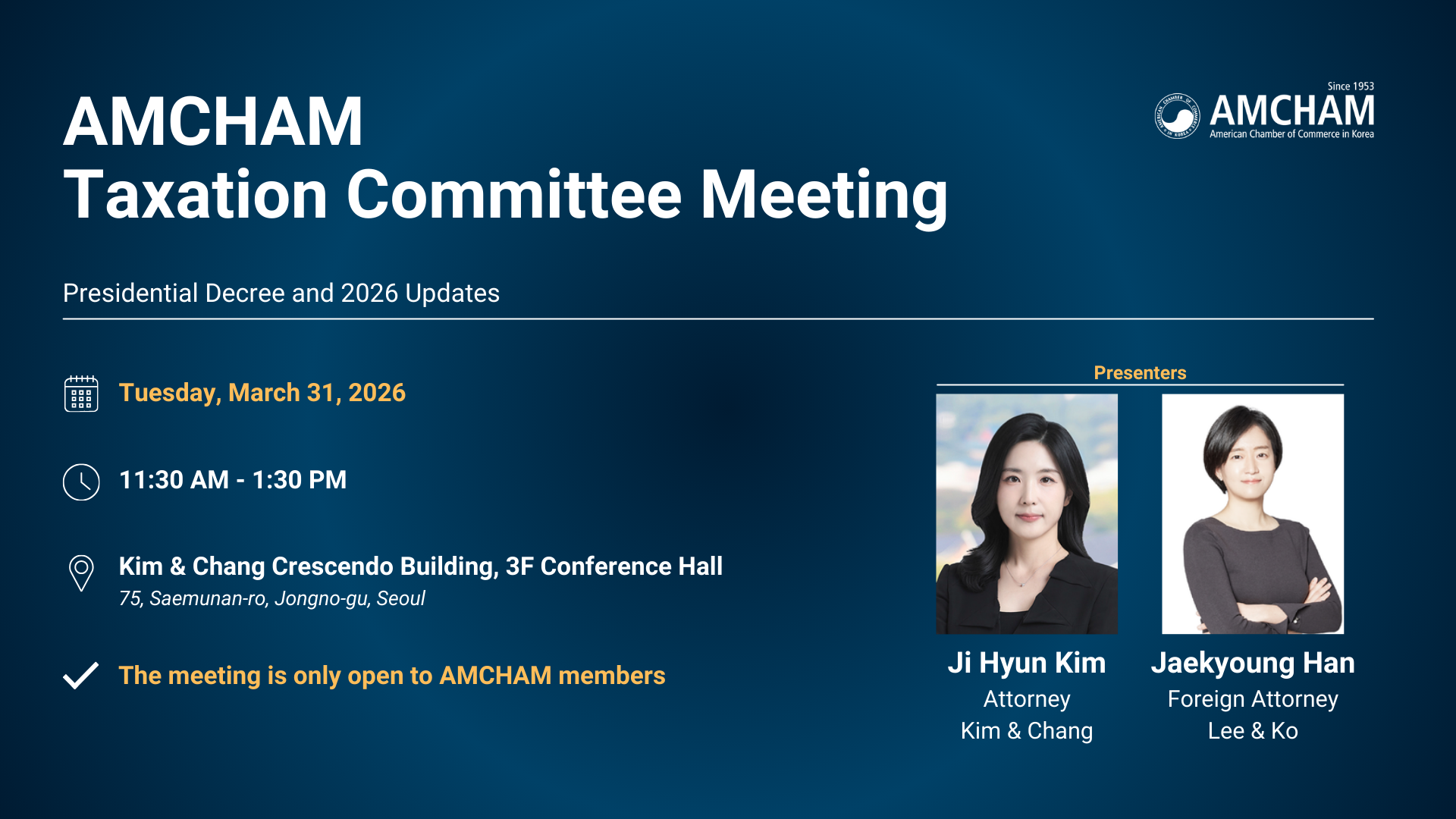 Kim & Chang Crescendo Building, 3F Conference Hall (75, Saemunan-ro, Jongno-gu, Seoul)