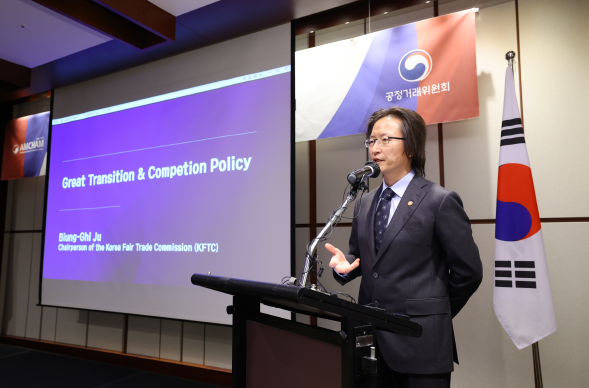 주 위원장은 15일 주한미국상공회의소(AMCHAM·암참)가 주최한 특별 간담회에 참석해 '대전환과 경쟁 정책'을 주제로 강연하며 이같이 밝혔다. 이날 제임스 김 암참 회장 겸 대표이사를 비롯해 다수의 미국 기업 관계자가 참석했다. 이 자리에서 주 위원장은 규제의 형평성을 최우선으로 강조했다. 그는 "불필요한 장벽으로 외국 기업이 역차별받는 일이 없도록 비차별 원칙을 확고히 지키겠다"고 약속하며 미국 등 글로벌 기업들의 우려를 불식시켰다.