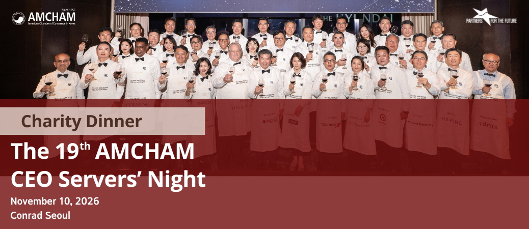 American Chamber of Commerce in Korea ![]() * Details will be provided soon. | | DATE & TIME | Tuesday, November 10, 2026 6:00 pm - 9:30 pm | | | VENUE | | Conrad Seoul, Grand Ballroom (3 Fl.) | | | 50F, Three IFC, 10, Gukjegeumyung-ro, Yeongdeungpo-gu, Seoul, Korea © American Chamber of Commerce in Korea. All Rights Reserved. | |
