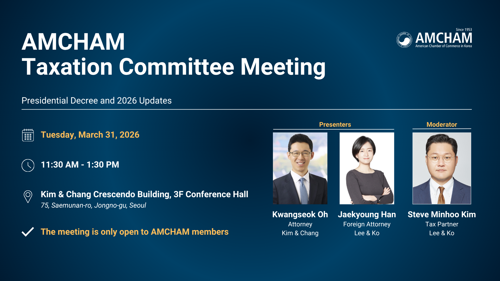 Kim & Chang Crescendo Building, 3F Conference Hall (75, Saemunan-ro, Jongno-gu, Seoul)