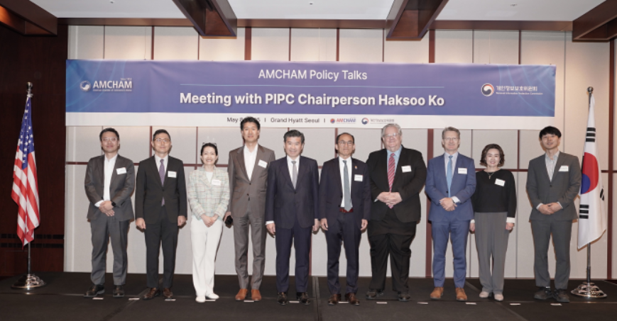 2025년 5월 8일 - 주한미국상공회의소 (회장 겸 대표이사 제임스 김, 이하 ‘암참’)가 오늘 그랜드 하얏트 서울 호텔에서 고학수 개인정보보호위원장을 초청해 정책 간담회를 개최했다.