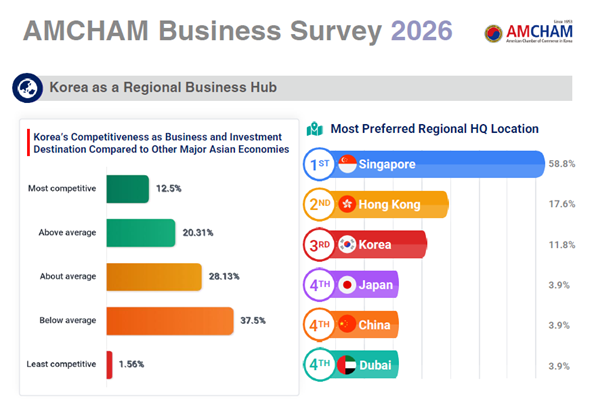 In line with these efforts, AMCHAM will host its upcoming “Doing Business in Korea” policy seminar on April 21, where key findings from this survey will be discussed alongside policy priorities to improve the regulatory environment and investment climate.